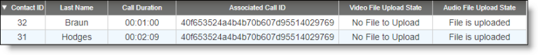 Calabrio ONE segments this contact into two contacts, 31 and 32. The recording for contact 31 has a duration of 00:02:09, which is the entire length of time that Agent Braun was connected to the customer. The recording for contact 32 has a duration of 00:01:00, which is only the length of time that Agent Hodges was consulting and then on a conference call with Agent Braun.